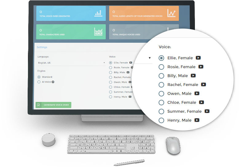 Spechelo comes with all kind of voices that you can use for your educational videos.