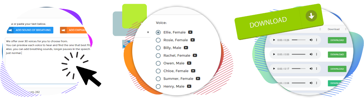 All our voices have elements that make a voice sound real and have all the expressions that needed to make people more engaged in your content and sound professional!